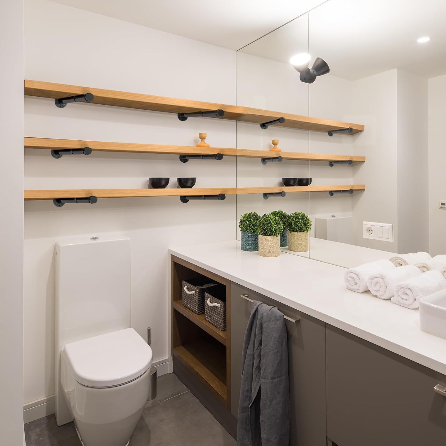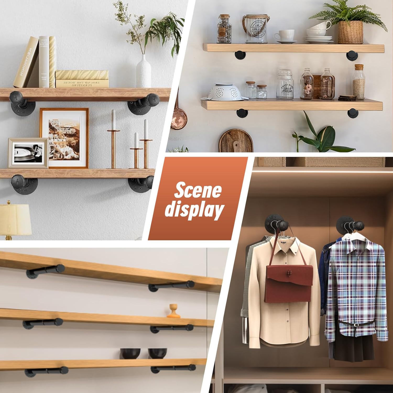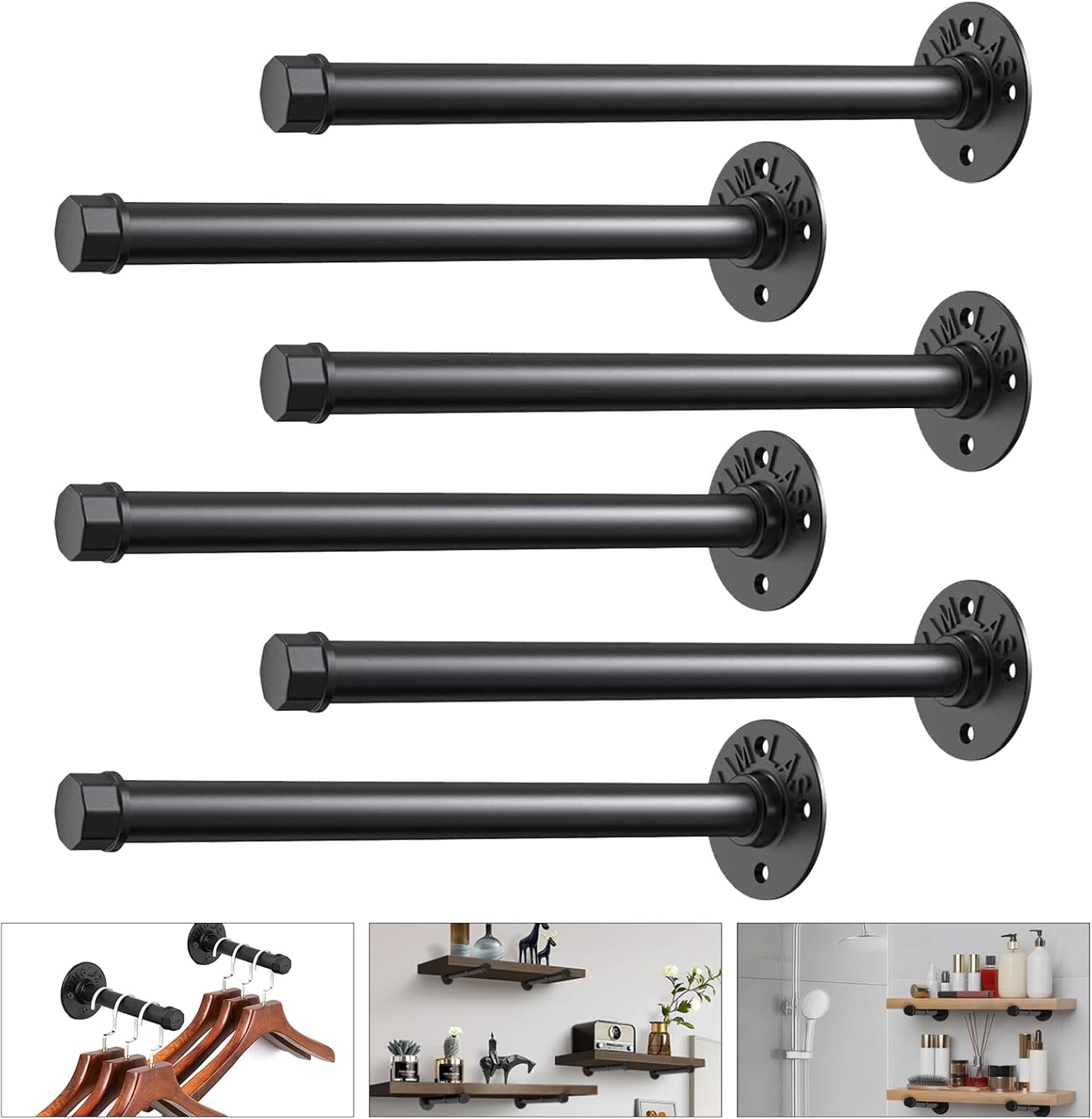 Industrial Pipe Shelf Brackets 12 Pack Floating Shelves L Brackets 12 Inch Black Shelving Bracket Heavy Duty for Wood, Kitchen, Laundry Room, Home Decor Hanger Bedroom