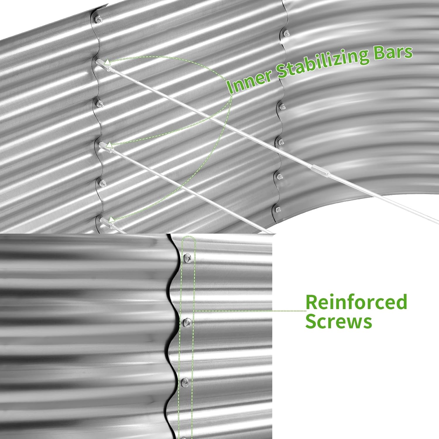 Land Guard 8x4x3ft Oval Galvanized Raised Garden Beds, Large-Capacity Metal Planter Box Outdoor, Durable Deep Raised Garden Bed 3ft Tall, Raised Beds for Gardening Vegetables, Classic Silver