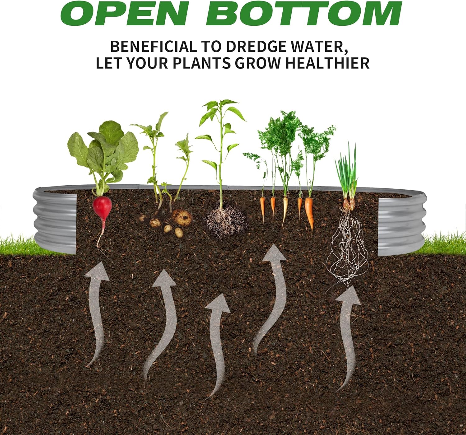 Raised Garden Bed Galvanized Planter Box Outdoor, 5ft Oval Large Rot-Resistant Metal Garden Bed Planter for Vegetables Flower Herb (Silver)